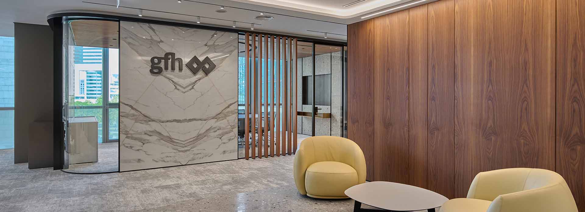 GFH was one such project for us since both the client and consultant were situated in Bahrain. GFH is a leading and dynamic financial group in the GCC region, with a diversified offering and pioneering track record headquartered in Bahrain’s Financial Harbour. Spacewell successfully managed the project and made the process smooth with a series of online workshops and physical samples which were sent to their office for approval.